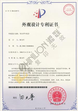 THE PATENT CERTIFICATION FOR 77MM SLAT DESIGN