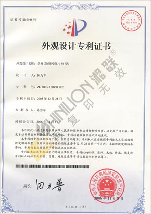 THE PATENT CERTIFICATION FOR HURRICANE SALT(56mm) DESIGN